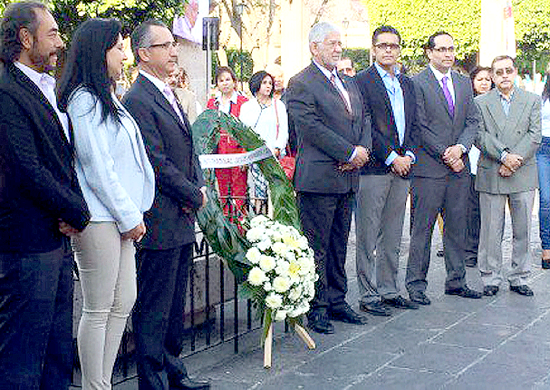 Una ceremonia para conmemorar el Día Internacional de Monumentos y Sitios declarados como Patrimonio de la Humanidad por la Organización de las Naciones Unidas para la Educación, la Ciencia y la Cultura (UNESCO) sirvió como marco para la colocación de una ofensa floral en la placa que conmemora la adhesión de la capital Michoacana en 1991.
