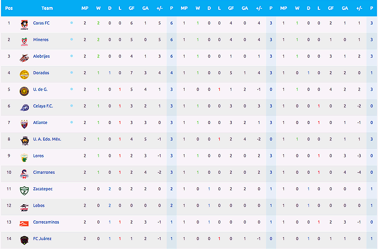 | 3 | Alebrijes | 2 | 2 | 0 | 0 | 4 | 1 | 3 | 6 | 100.00% |