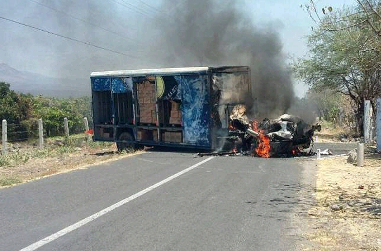 En la mañana, Un camión fue incendiado la mañana de este miércoles sobre la carretera a Aguililla a la altura de Chandio, localidad perteneciente al municipio de Apatzingán.