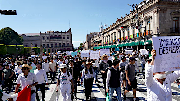 Al arribar al Centro Histórico, se desató el caos, con gritos, consignas y, posteriormente, enfrentamientos entre los jóvenes manifestantes y las fuerzas del orden que custodiaban el edificio gubernamental, como ocurre en cada movilización.