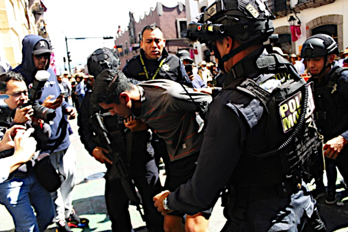 Esta tarde, un individuo joven fue arrestado en las cercanías del Congreso del Estado en el momento en que intentaba acceder al lugar donde se llevará a cabo la ceremonia de toma de protesta de Grecia Itzel Quiroz como alcaldesa interina de Uruapan.