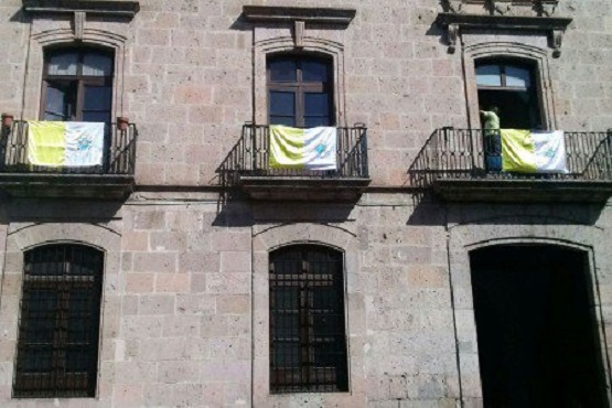 A casi una semana de que el papa Francisco visite a la capital michoacana, en edificios del Centro Histórico comienzan a instalar banderas del Vaticano en sus fachadas a fin de prepararlas para que el Pontífice las vea durante su recorrido.