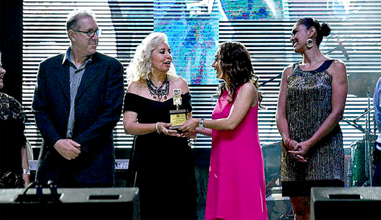 * A nombre del Gobernador Silvano Aureoles, la coordinadora de Comunicación Social, Julieta López recibió el Micrófono de Platino.