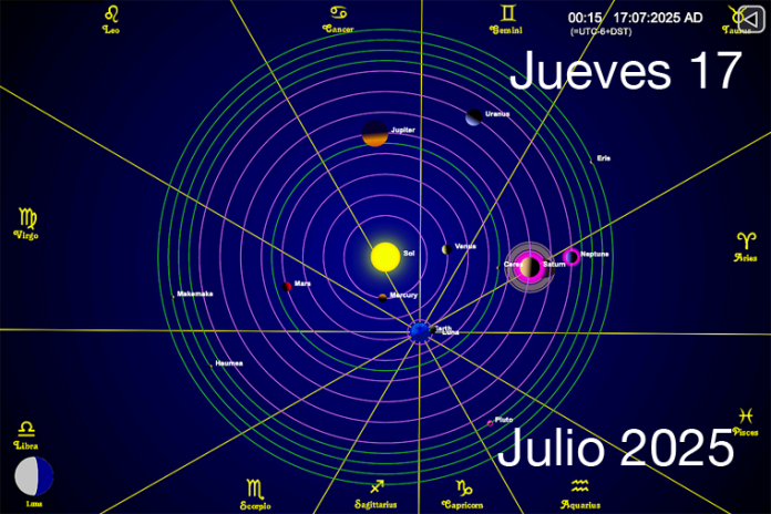 Hoy es Jueves 17 de Julio es el día número 198 y faltan por transcurrir 167 días, es la semana número 29, vigésimo noveno Jueves de 2025, van 27 días de Verano y faltan 67 días para la Otoño. La piedra de nacimiento para este mes es Rubí y Onyx. Es el día lunar número 23 del mes lunar 6, la Luna está en su fase Último Cuarto y bajo el signo Aries que tiene influencia en los siguientes órganos: Cabeza, dientes, lengua, arterias. El símbolo del día lunar es: Cocodrilo Makkara