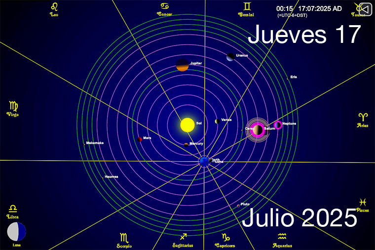 | Júpiter | Jue 5:02 am | Jue 6:15 pm | Jue 11:38 am | Visibilidad media |