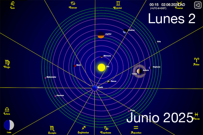 Hoy es Lunes 2 de Junio es el día número 153 y faltan por transcurrir 212 días, es la semana número 22, vigésimo segundo Lunes de 2025, van 74 días de Primavera y faltan 18 días para la Verano. La piedra de nacimiento para este mes es Alejandrina, Perla y Piedra Lunar. Es el día lunar número 7 del mes lunar 5, la Luna está en su fase Media Luna Creciente y bajo el signo Desde 03:00 am Virgo que tiene influencia en los siguientes órganos: Páncreas, intestino delgado, tracto digestivo. El símbolo del día lunar es: Rosa de los vientos