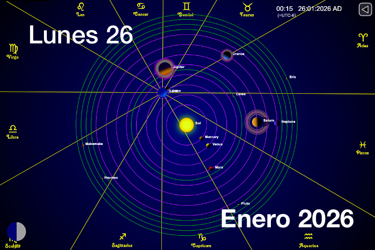 Hoy es Lunes 26 de Enero es el día número 26 y faltan por transcurrir 339 días, es la semana número 4, cuarto Lunes de 2025, van 36 días de Invierno y faltan 53 días para la Primavera. La piedra de nacimiento para este mes es Granate. Es el día lunar número 8 del mes lunar 12, la Luna está en su fase Gibosa Creciente y bajo el signo Luna en Capricornio que tiene influencia en los siguientes órganos: Cuello, Cuerdas Vocales, Garganta, Glándula Tiroides. El símbolo del día lunar es: Ave Fénix
