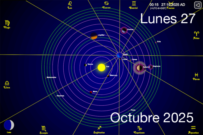 Hoy es Lunes 27 de Octubre es el día número 300 y faltan por transcurrir 65 días, es la semana número 43, cuadragésimo tercer Lunes de 2025, van 35 días de Otoño y faltan 55 días para la Invierno. La piedra de nacimiento para este mes es Ópalo y Turmalina. Es el día lunar número 7 del mes lunar 9, la Luna está en su fase Media Luna Creciente y bajo el signo Capricornio que tiene influencia en los siguientes órganos: Columna vertebral, articulaciones, rodillas, piel, cabello. El símbolo del día lunar es: Rosa de los vientos