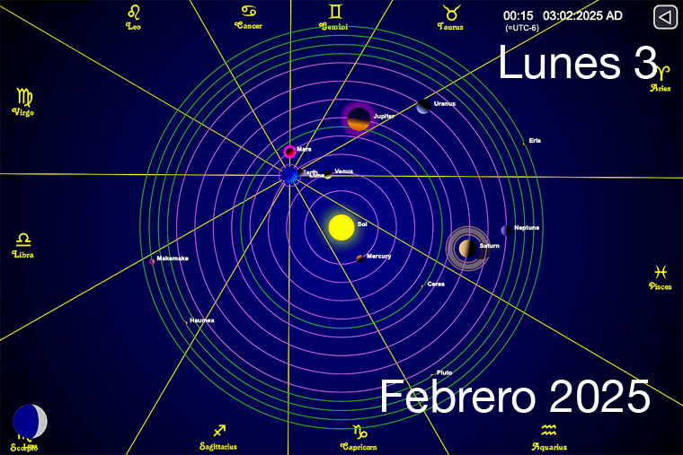 Hoy es Lunes 3 de Febrero es el día número 34 y faltan por transcurrir 331 días, es la semana número 5, quinto Lunes de 2025, van 44 días de Invierno y faltan 44 días para la Primavera. La piedra de nacimiento para este mes es Amatista. Es el día lunar número 6 del mes lunar 1, la Luna está en su fase Media Luna Creciente y bajo el signo Aries que tiene influencia en los siguientes órganos: Cabeza, dientes, lengua, arterias. El símbolo del día lunar es: Grulla