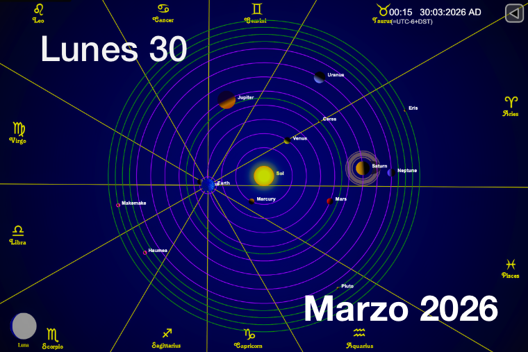 Hoy es Lunes 30 de Marzo es el día número 89 y faltan por transcurrir 276 días, es la semana número 13, decimotercer Lunes de 2026, van 10 días de Primavera y faltan 83 días para la Verano. La piedra de nacimiento para este mes es Diamante y Cristal. Es el día lunar número 12 del mes lunar 2, la Luna está en su fase Gibosa Creciente y bajo el signo Luna en Piscis que tiene influencia en los siguientes órganos: Páncreas, Intestino Delgado, Tracto Digestivo. El símbolo del día lunar es: Corazón