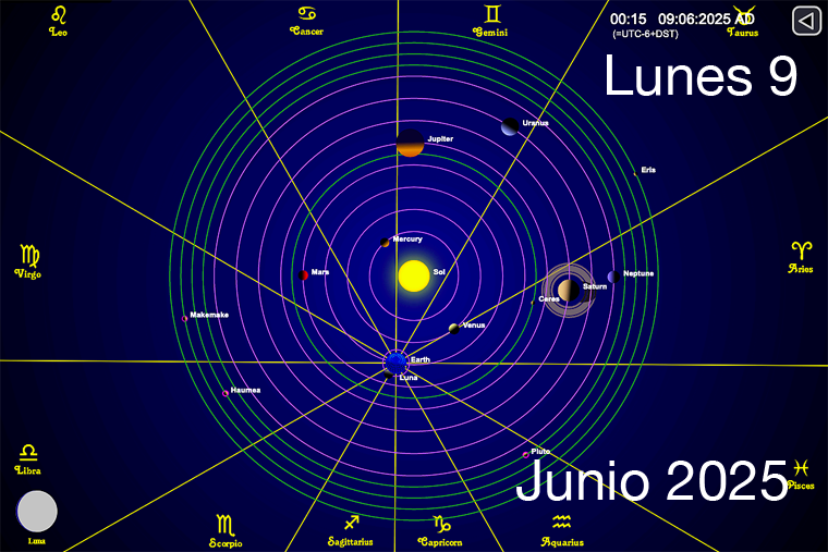 Hoy es Lunes 9 de Junio es el día número 160 y faltan por transcurrir 205 días, es la semana número 23, vigésimo tercer Lunes de 2025, van 81 días de Primavera y faltan 11 días para la Verano. La piedra de nacimiento para este mes es Alejandrina, Perla y Piedra Lunar. Es el día lunar número 14 del mes lunar 5, la Luna está en su fase Gibosa Creciente y bajo el signo Escorpión desde 14:56 (2:56 pm) Sagitario que tiene influencia en los siguientes órganos: Genitales, ano, uretra, próstata. El símbolo del día lunar es: Dos Tubos