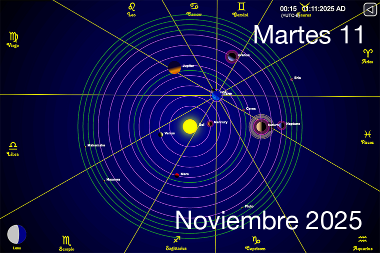 Hoy es Martes 11 de Noviembre es el día número 315 y faltan por transcurrir 50 días, es la semana número 46, cuadragésimo quinto Martes de 2025, van 50 días de Otoño y faltan 40 días para la Invierno. La piedra de nacimiento para este mes es Topacio y Citrino. Es el día lunar número 22 del mes lunar 9, la Luna está en su fase Gibosa Menguante y bajo el signo Leo que tiene influencia en los siguientes órganos: Corazón, aorta, presión arterial, circulación sanguínea. El símbolo del día lunar es: Ganesha