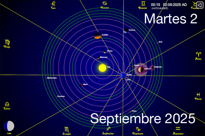 Hoy es Martes 2 de Septiembre es el día número 245 y faltan por transcurrir 120 días, es la semana número 36, trigésimo quinto Martes de 2025, van 74 días de Verano y faltan 20 días para la Otoño. La piedra de nacimiento para este mes es Zafiro. Es el día lunar número 11 del mes lunar 7, la Luna está en su fase Gibosa Creciente y bajo el signo Desde 01:45 am Capricornio que tiene influencia en los siguientes órganos: Columna vertebral, articulaciones, rodillas, piel, cabello. El símbolo del día lunar es: Kundalini