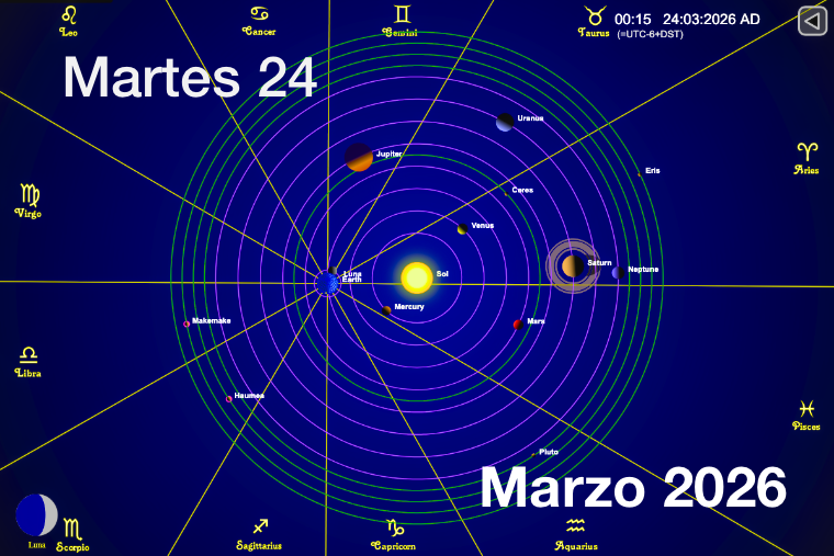 Hoy es Martes 24 de Marzo es el día número 83 y faltan por transcurrir 282 días, es la semana número 12, duodécimo Martes de 2026, van 4 días de Primavera y faltan 89 días para la Verano. La piedra de nacimiento para este mes es Aquamarina, Piedra de Sangre y Jade. Es el día lunar número 6 del mes lunar 2, la Luna está en su fase Media Luna Creciente y bajo el signo Luna en Piscis que tiene influencia en los siguientes órganos: Hombros, Brazos, Manos, Bronquios, Pulmones. El símbolo del día lunar es: Grulla