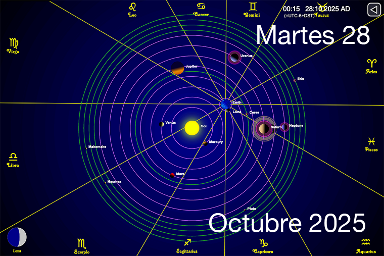 | Saturno | Mar 4:06 pm | Mie 3:58 am | Mar 10:02 pm | Visibilidad perfecta |