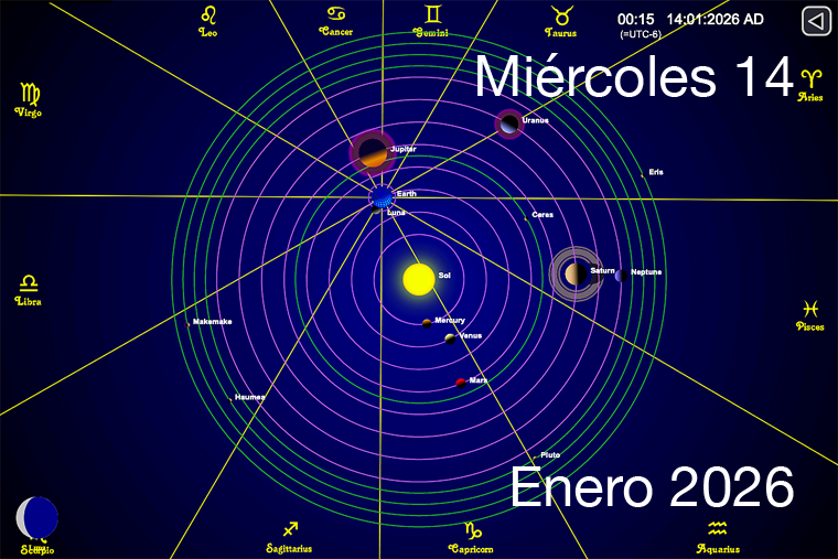 | Saturno | Mie 11:03 am | Mie 10:57 pm | Mie 5:00 pm | Visibilidad media |