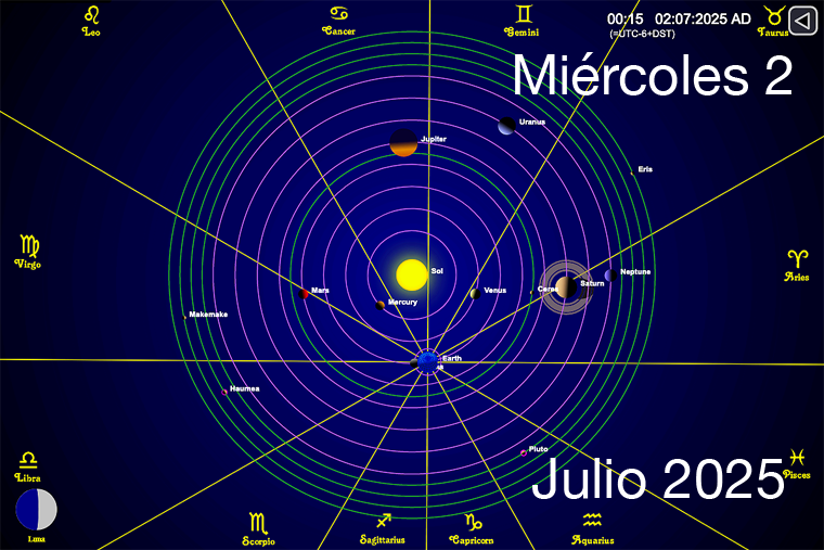 | Saturno | Jue 12:08 am | Jue 12:07 pm | Jue 6:08 am | Gran visibilidad |