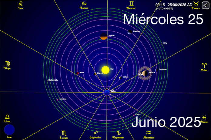 Hoy es Miércoles 25 de Junio es el día número 176 y faltan por transcurrir 189 días, es la semana número 26, vigésimo sexto Miércoles de 2025, van 5 días de Verano y faltan 89 días para la Otoño. La piedra de nacimiento para este mes es Alejandrina, Perla y Piedra Lunar. Es el día lunar número 1 del mes lunar 6, la Luna está en su fase Nueva Luna a las 10:31 y bajo el signo Desde 03:44 am Cáncer que tiene influencia en los siguientes órganos: Estómago, mucosas, mama, útero, ovario. El símbolo del día lunar es: Vela