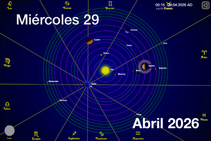 Hoy es Miércoles 29 de Abril es el día número 119 y faltan por transcurrir 246 días, es la semana número 18, decimoséptimo Miércoles de 2026, van 40 días de Primavera y faltan 53 días para la Verano. La piedra de nacimiento para este mes es Diamante y Cristal. Es el día lunar número 13 del mes lunar 3, la Luna está en su fase Gibosa Creciente y bajo el signo Luna en Aries que tiene influencia en los siguientes órganos: Riñón, Uréter, Vejiga Urinaria, Venas, Piel. El símbolo del día lunar es: Rueda