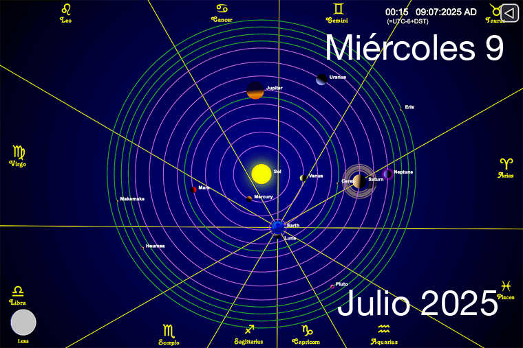 Hoy es Miércoles 9 de Julio es el día número 190 y faltan por transcurrir 175 días, es la semana número 28, vigésimo octavo Miércoles de 2025, van 19 días de Verano y faltan 75 días para la Otoño. La piedra de nacimiento para este mes es Rubí y Onyx. Es el día lunar número 15 del mes lunar 6, la Luna está en su fase Gibosa Creciente y bajo el signo Desde 08:55 am Capricornio que tiene influencia en los siguientes órganos: Columna vertebral, articulaciones, rodillas, piel, cabello. El símbolo del día lunar es: Serpiente Ardiente