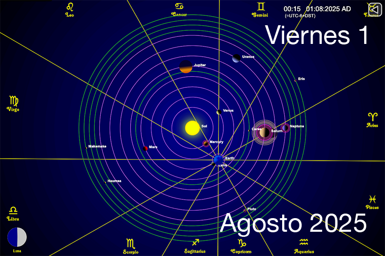 | Neptuno | Vie 10:08 pm | Sáb 10:09 am | Sáb 4:09 am | Difícil de ver |