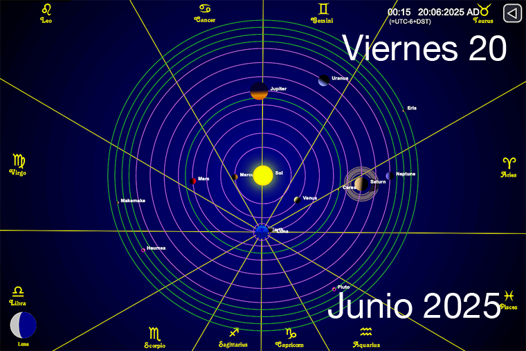 | Saturno | Sáb 12:54 am | Sáb 12:53 pm | Sáb 6:54 am | Visibilidad media |