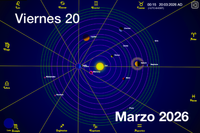 Hoy es Viernes 20 de Marzo es el día número 79 y faltan por transcurrir 286 días, es la semana número 12, duodécimo Viernes de 2026, van 0 días de Primavera y faltan 93 días para la Verano. La piedra de nacimiento para este mes es Aquamarina, Piedra de Sangre y Jade. Es el día lunar número 2 del mes lunar 2, la Luna está en su fase Media Luna Creciente y bajo el signo Luna en Piscis que tiene influencia en los siguientes órganos: Cabeza, Dientes, Lengua, Arterias. El símbolo del día lunar es: Cuerno de la abundancia