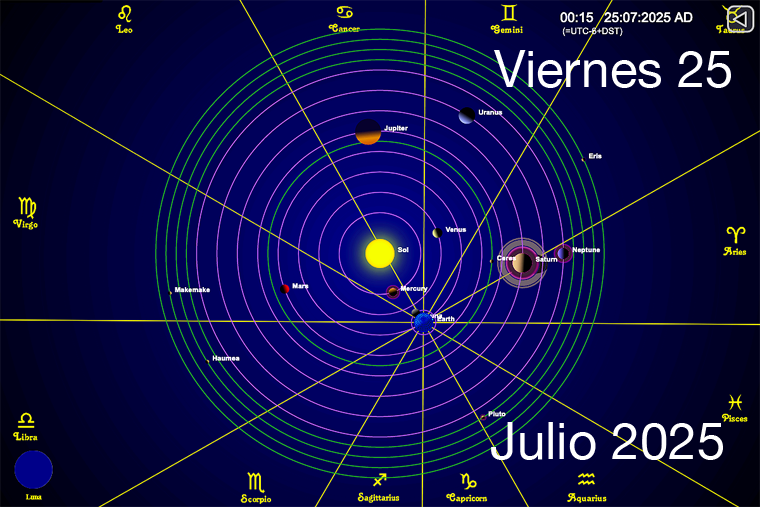 Hoy es Viernes 25 de Julio es el día número 206 y faltan por transcurrir 159 días, es la semana número 30, trigésimo Viernes de 2025, van 35 días de Verano y faltan 59 días para la Otoño. La piedra de nacimiento para este mes es Rubí y Onyx. Es el día lunar número 1 del mes lunar 6, la Luna está en su fase Media Luna Creciente y bajo el signo Leo que tiene influencia en los siguientes órganos: Corazón, aorta, presión arterial, circulación sanguínea. El símbolo del día lunar es: Vela