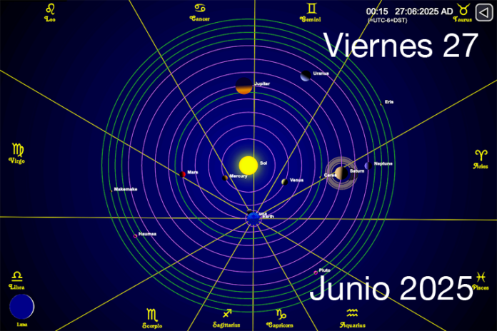 Hoy es Viernes 27 de Junio es el día número 178 y faltan por transcurrir 187 días, es la semana número 26, vigésimo sexto Viernes de 2025, van 7 días de Verano y faltan 87 días para la Otoño. La piedra de nacimiento para este mes es Alejandrina, Perla y Piedra Lunar. Es el día lunar número 3 del mes lunar 6, la Luna está en su fase Media Luna Creciente y bajo el signo Desde 06:06 am Leo que tiene influencia en los siguientes órganos: Corazón, aorta, presión arterial, circulación sanguínea. El símbolo del día lunar es: Leopardo