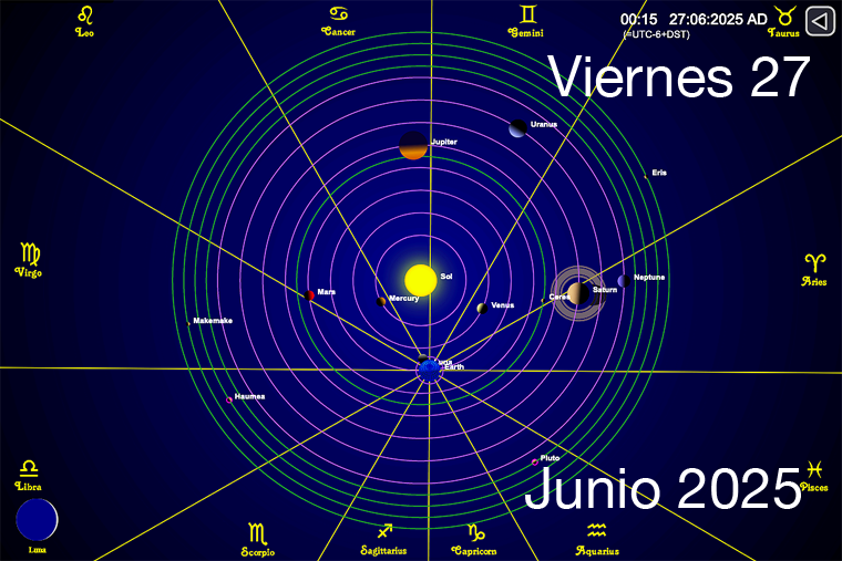 | Saturno | Sáb 12:27 am | Sáb 12:26 pm | Sáb 6:27 am | Gran visibilidad |