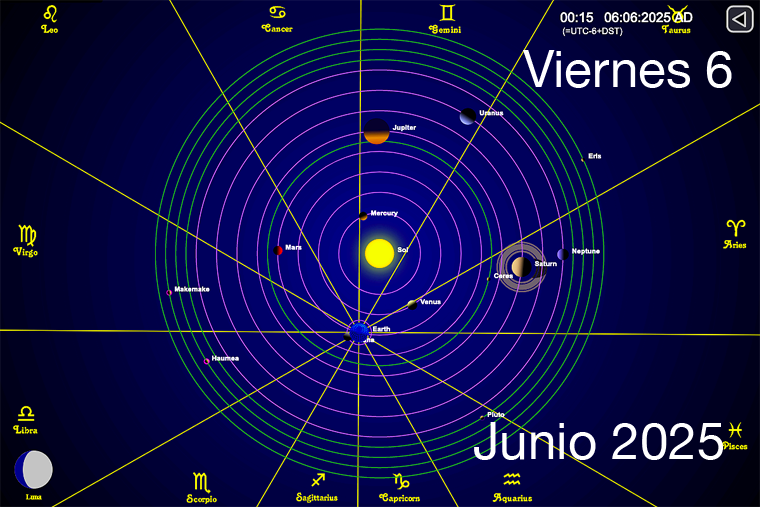 | Saturno | Sáb 1:47 am | Sáb 1:45 pm | Sáb 7:46 am | Visibilidad media |