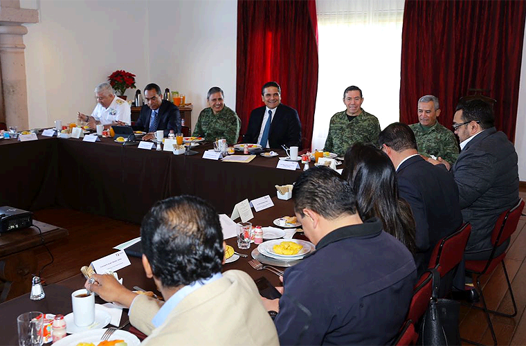 También estuvieron presentes en esta sesión de trabajo los secretarios de Gobierno y de Seguridad Pública, Adrián López Solís y Juan Bernardo Corona Martínez, respectivamente; el procurador general de Justicia, José Martín Godoy Castro; los comandantes de la 43 y 21 Zonas Militares, los generales Cruz Isaac Muñoz Navarro y José Francisco Morales Cázares, respectivamente.