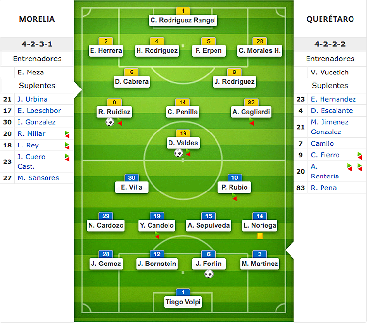 El delantero peruano Raúl Ruidíaz salió del campo de juego al minuto 71. En su reemplazo ingresó el atacante colombiano nacionalizado mexicano Luis Gabriel Rey. Tras eso, el Querétaro se creció. El equipo visitante empezó a ganar terreno y a hostigar el arco defendido por el portero Carlos Rodríguez.