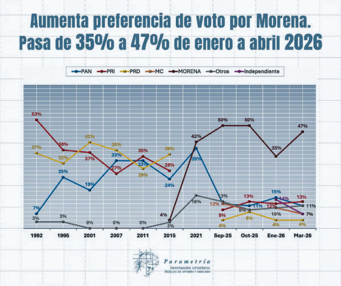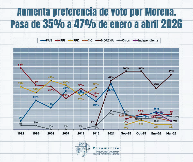 Morena lidera todas las proyecciones hacia 2027: Parametría