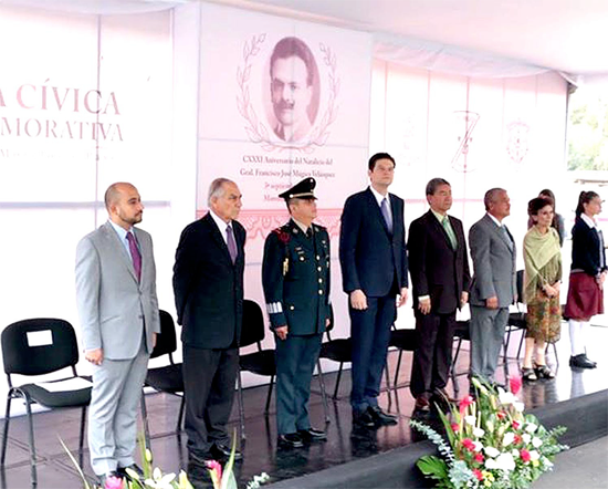 Así lo señaló el orador oficial para esta remembranza del constitucionalista General F.J Mugica, en el atril, al conmemorar el CXXXI aniversario del natalicio del tambien general en ese contexto Plaza Urbina puso de relieve ente el auditorio compuesto por el edil , Alfonso Martínez Alcázar, el secretario de Gobierno, Jaime Esparza Cortina, Margarita Boyer Mugica, nieta del General Francisco José Múgica, Adamari Medina Lemus, alumna de la Secundaria Federal No. 3, José Guadalupe Ramírez Gaytán, representante del Poder Legislativo del Estado, así como Ciro Artemio Constantino Álvarez, representante de la Secretaría de Educación y el Mayor de Infantería Diplomado de Estado Mayor, José de Jesús Baños Sauza como representante de la XXI Zona Militar con sede en la capital michoacana; que hoy, casi un siglo después, los ciudadanos tienen el lujo de defender y luchar por sus ideales sin sangre y sin muerte. Igualmente enfatizó que es momento de aquilatar su legado y asumir la responsabilidad de defenderlo, aprenderlo y practicarlo.