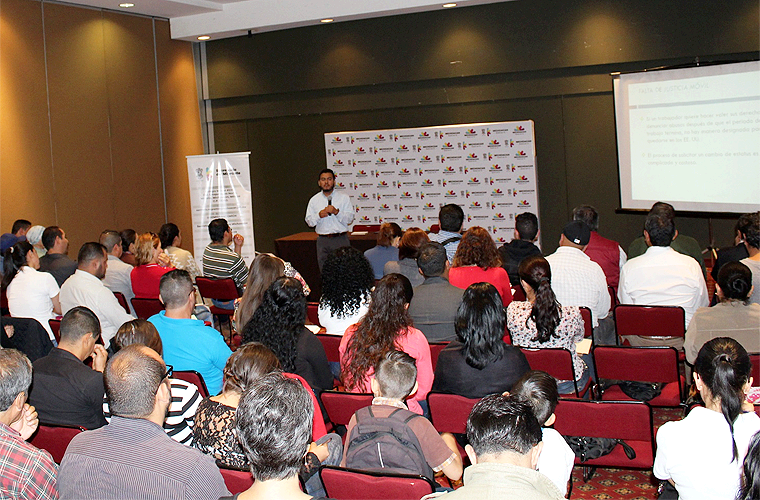Morelia, Michoacán, a 20 de julio de 2016.- Con el objetivo de que los directores de los Centros Municipales de Atención al Migrante conozcan y den a conocer el procedimiento que se sigue para la obtención de una visa de trabajo temporal en Estados Unidos y con ello evitar que los trabajadores temporales sean víctimas de algún fraude en el proceso de reclutamiento, la Secretaría del Migrante (Semigrante), en coordinación con Global Workers Justice Alliance y Pastoral de Movilidad Humana, realizó el taller “Sistema de visas de trabajo temporal de los Estados Unidos: proceso, marco legal y el reclutamiento internacional”.