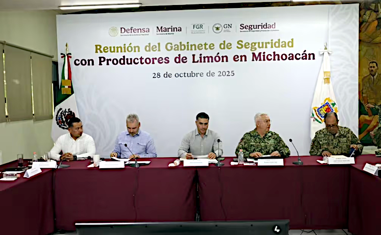 El secretario de Seguridad y Protección Ciudadana, Omar García Harfuch, se reunió este martes en Apatzingán, Michoacán, con los productores de limón para atender sus preocupaciones tras el asesinato del empresario del sector, Bernardo Bravo.