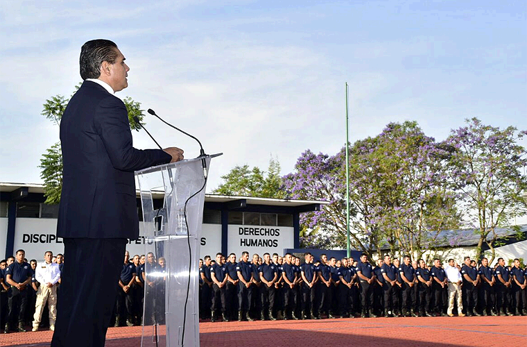 Mero durante el evento de transición de la Fuerza Rural a Policía Michoacán, Silvano Aureoles pidió a los 561 elementos que hoy se incorporan a la Policía Michoacán, velar por la paz y tranquilidad de los ciudadanos, de igual manera, dejó en claro que el Gobierno del Estado no retrocederá, “Ni un milímetro” en materia de seguridad.