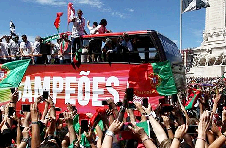 Tras la recepción con el jefe del Estado, los futbolistas recorrieron los principales puntos de Lisboa a bordo de un autobús que pasó por la céntrica plaza de Marqués de Pombal, la Avenida Liberdade y acabó en la Alameda Dom Afonso Henriques.