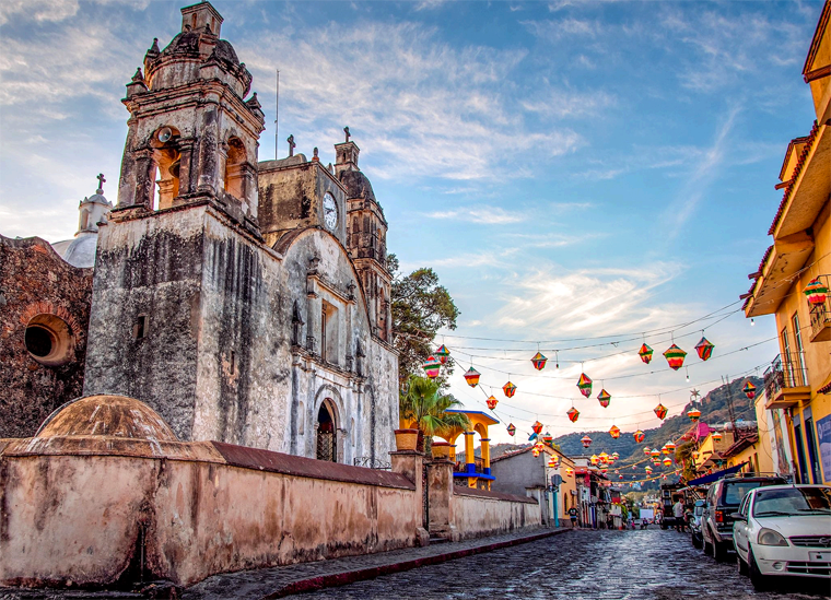 Tepoztlán es un pueblo mexicano al sur de la Ciudad de México. Es conocido por ser el lugar de nacimiento de Quetzalcóatl, el dios azteca representado con una serpiente emplumada, y por su mercado de artesanías semanal. Un empinado sendero llega a la pirámide azteca del Tepozteco, en la cima de un cerro sobre la ciudad. El Exconvento de Tepoztlán es un antiguo monasterio dominicano del siglo XVI y tiene un museo de historia local. El Museo Carlos Pellicer adyacente exhibe arte prehispánico.