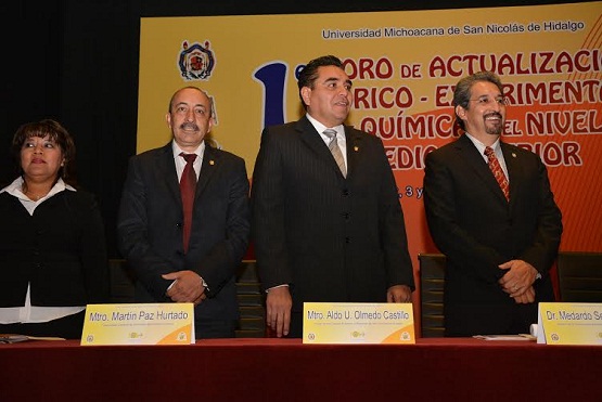 En el Aula Máter del Colegio Primitivo y Nacional de San Nicolás de Hidalgo, acompañado por los directores de los siete planteles y el rector Medardo Serna González, Martín Paz Hurtado resaltó que este evento es fruto de la organización de los docentes en torno a las academias del Bachillerato, lo cual se traduce en un trabajo interinstitucional a nivel medio superior y a la posibilidad de intercambiar experiencias en la enseñanza de la Química y fomentar la Responsabilidad Social Universitaria (RSU).