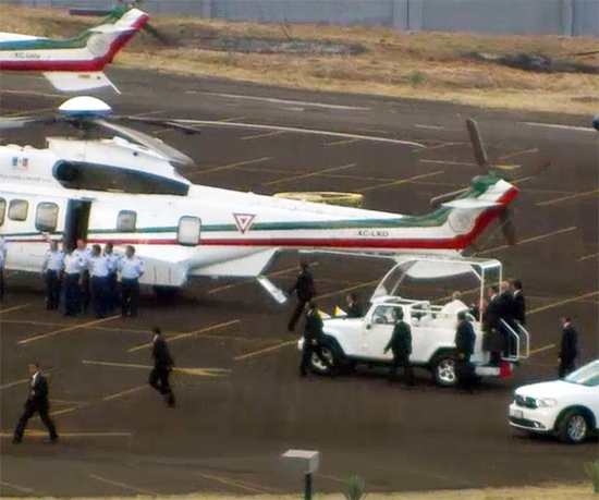 Salió del Estadio para tomar un helicóptero super puma en las inmediaciones del mismo, que lo llevó al aeropuerto internacional General Francisco J. Mújica, que lo traslado al aeropuerto de la ciudad de México, para llegar a la capital de país a las 19:30 horas, donde inicio su trayecto hacia la nunciatura.