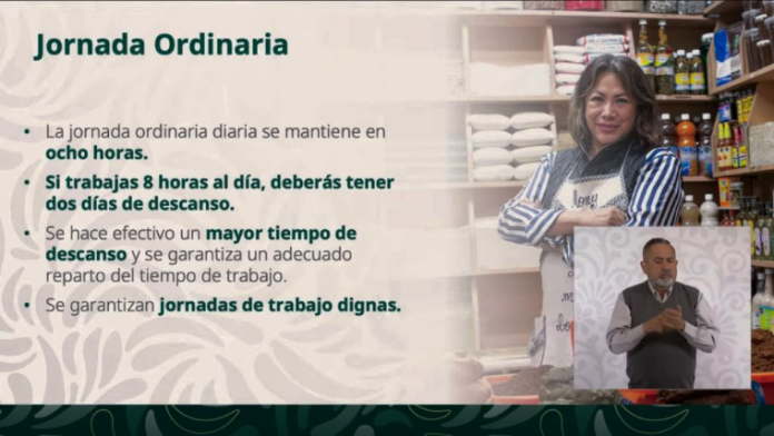 “Con un régimen de ocho horas de trabajo diario se pretende garantizar dos días de descanso en el marco de la implementación de la nueva normativa”, manifestó el funcionario, quien recordó las características de la reforma promovida por la presidenta de México, Claudia Sheinbaum.