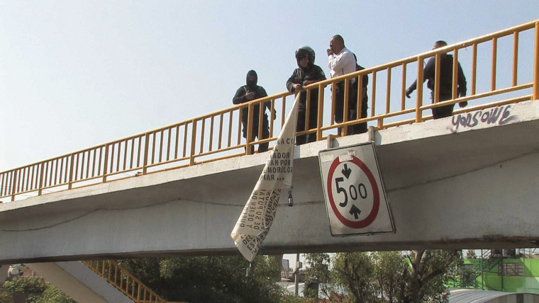 El desplegado fue colgado en uno de los barandales del puente vehícular de la Avenida Escuadrón 201 (Décima), localizado entre las colonias Jardines de Guadalupe y Francisco Zarco.